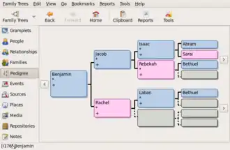 Gramps — широко используемый программный пакет для офлайн-генеалогии[15]. Среди возможностей: