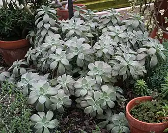 Что касается экспозиции, растение предпочитает полутень и частичное солнце, хотя оно также может приспособиться к полному солнцу или полутени. Цвет листьев может варьировать от серо-голубого на полутени до серо-розового на полном солнце, а также от розовато-серого до желтого на ярком солнце.