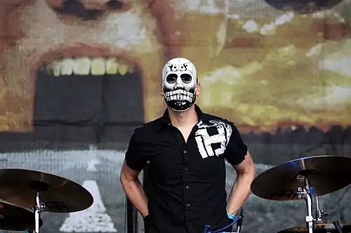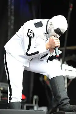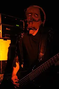 В этот период у басиста была обычная, как и у гитариста, одежда, а вот с маской дела поинтересней. Маска (как и будет в будущем) имеет следующую комплекцию: Форма напоминает мешок, рот завязан и имеются вырезы под глаза. Также есть хвост. Сама маска напоминает маску висельника. У «Юга» в этот период был весьма интересный образ. Футболка с логотипом группы, и однотонная маска хорошо дополняют друг друга (как кажется автору статьи).