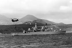 | Радиолокационное вооружение | РЛС обнаружения надводных целей типа 992Q, РЛС обнаружения воздушных целей типа 965, РЛС управления огнём ЗРК типа 909 (две) |
