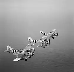 25 мая эскадра была обнаружена немецкими самолётами-разведчиками Junkers Ju 290. Юнкерсы ушли без повреждений, при этом один из Си Харикейнов, вылетевших на перехват, не смог выйти из пикирования и упал в море, пилот погиб[13]. 26 мая 1944 года на рассвете, Харикейн, пилотируемый суб-лейтенантом Бургхэмом, сбил Ju 290 № 9K + FK FAGr 5 над Бискайским заливом. Во второй половине того же дня суб-лейтенанты Мирнс и Уоллис атаковали ещё два Ju 290, Мирнс сбил № 9V+GK, пилотируемый Куртом Ноннебергом, пилот выпрыгнул с парашютом. Другой Ju-290 получив повреждение исчез в облаке и, как предполагалось, разбился[14][15].