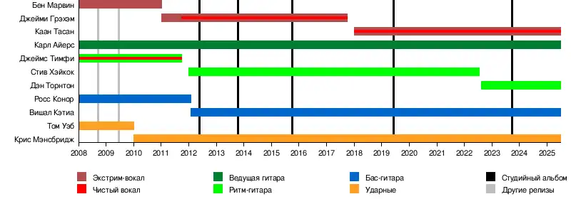 - Бэн Марвин — экстрим-вокал (2007–2011)