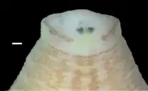 ![]() Под буквой d изображение спинной (dorsal) стороны, под буквой v — брюшной (ventral). Шкала изображает отрезок в 1 мм. | ||||||