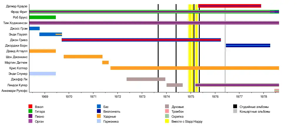 - Фред Фрит (1968–1978) — гитара, скрипка, бас-гитара, фортепиано, ксилофон