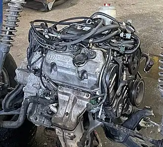 Впускные и выпускные коллекторы открываются и закрываются коромыслом, приводимым в движение ремнём ГРМ распредвала. Два впускных и два выпускных коллектора расположены по обе стороны от свечи зажигания, которая установлена в верхней центральной части камеры сгорания. Блок цилиндров и отверстие цилиндра изготовлены из литого под давлением алюминия, равно как и крышки клапанов и масляный поддон. Ранние японские требования к выбросам для легковых автомобилей требовали, чтобы очистка выхлопных газов осуществлялась с помощью трёхкомпонентного катализатора. Позже в это требование были внесены поправки, чтобы включить в него и коммерческие автомобили.