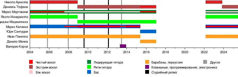 Юри Сантурри (ит. Yuri Santurri) Данило Менна (ит. Danilo Menna) Валерио "Нексо" Корси (ит. Valerio "Nekso" Corsi) Луиджи Маджилокка (ит. Luigi Magliocca) Николо "Ник" "Райзхелл" Аркилла (ит. Nicolò "Nick" "Raizhell" Arquilla) |