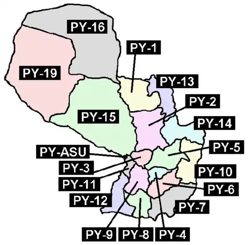 Геокоды 1 столичного округа и 17 департаментов административно-территориального деления Парагвая.
