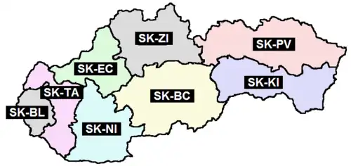 Геокоды 8 краёв административно-территориального деления Словакии.