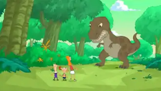 Финес, Ферб, Кэндес и тираннозавр в прошлом | |||||
