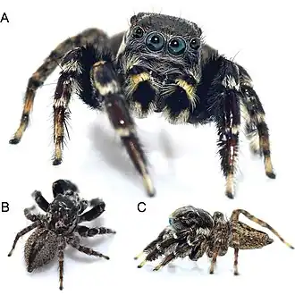 - Zhang J. X., Maddison W. P. (2015) Genera of euophryine jumping spiders (Araneae: Salticidae), with a combined molecular-morphological phylogeny. Zootaxa 3938: 1—147. https://doi.org/10.11646/zootaxa.3938.1.1