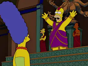 - Небольшая часть эпизода является отсылкой к фильму «Индиана Джонс». Например, то, как одевается Гомер, относится к тому, что Мола Рам носит в фильме «Индиана Джонс и храм судьбы». Кроме того, люди скандируют Гомеру так же, как и для Мола Рама в фильме, а индийская часть эпизода целиком похожа на «Храм Судьбы».[1]