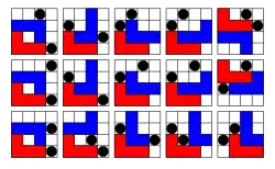 В игре с двумя идеальными игроками ни один из них никогда не выигрывает и не проигрывает. Существует 2296 различных способов, которыми могут быть расположены фигуры (без учёта возможностей вращения или зеркального расположения в новом способе расположения фигур; а также с учётом взаимозаменяемости нейтральных фигур). Любое расположение фигур может возникнуть во время игры у каждого из игроков. Каждый игрок проиграет в 15 изображенных на рисунке позициях, если сейчас его ход (на рисунке его фигура показана красным цветом). В каждом случае фигура того, кто проигрывает, касается угла поля.