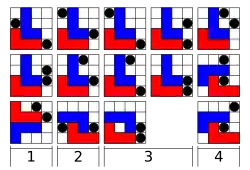 Одной из основных стратегий является использование нейтральной фигуры и собственной L-образной фигуры, чтобы заблокировать часть поля размером 3 × 3 квадрата в одном из углов, и использование другой нейтральной фигуры, чтобы не позволить L-образной фигуре соперника перейти в зеркальное положение. Другая стратегия заключается в блокировании L-образной фигурой половины поля, с последующим использованием нейтральных фигур, чтобы предотвратить возможные изменения позиции противника.