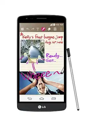 LG G3 StylusAndroid-смартфон, разработанный LG Electronics. Это недорогой фаблет, созданный по образцу LG G3 и оснащенный стилусом, который можно использовать для рисования и сенсорного ввода[1].
