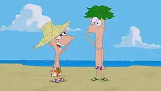 - ↑ Opening credits for "Lawn Gnome Beach Party of Terror" from Volume I: "The Fast and the Phineas" (DVD). Buena Vista Home Entertainment. 2008.