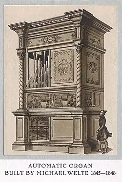 - ↑ The Orchestrion by M. Welte, of Vöhrenbach, In the Zollverein Departement. The Illustrated London News, Sept. 20, 1862.