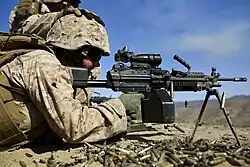 5,56-мм ручной пулемёт M249 SAW (в пер. букв. «пила», сокращение от Squad Automatic Weapon[5] — «автоматическое оружие отделения», в народе — «поросёнок») — вариант ручного пулемёта FN Minimi для армии США калибра 5,56×45 мм американского производства (производится FN Manufacturing, Inc. — местным филиалом бельгийской компании FN Herstal), серийное производство началось в 1980-х годах.