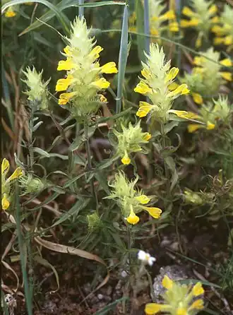 Однолетнее травянистое растение высотой от 15 до 35 сантиметров. От 6 до 8 пар листьев узколанцетной формы шириной от 3 до 8 миллиметров. Корневище с длинными подземными побегами. Стебель прямостоячий, мягкоопушенный, неветвистый или разветвленный. Период цветения в Северном полушарии — с мая по июль. Гермафродитные цветки зигоморфные с двойным околоцветником. Чашечка густо опушённая. Зубцы чашечки примерно такой же длины, как трубка венчика, и имеют ости 2-3 миллиметра длиной. Одноцветный бледно-жёлтый венчик длиной от 20 до 25 миллиметров, двугубый. Нижняя губа с изогнутым краем отходит от верхней, оставляя открытым устье венчика. Плод — яйцевидная двухгнездная коробочка[1].