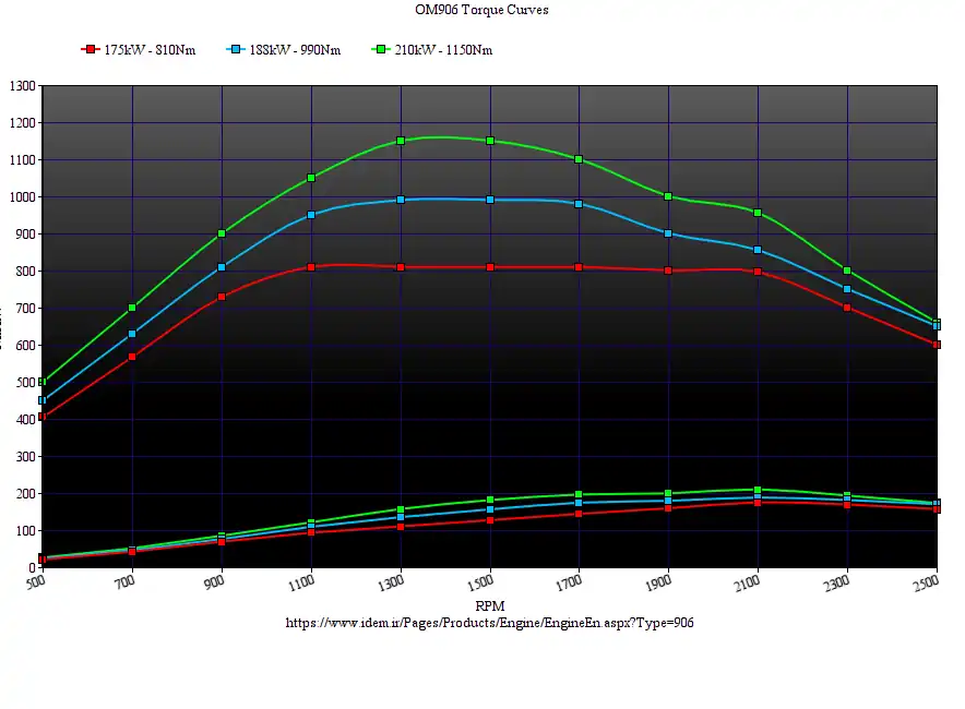 | Крутящий момент: | 810—1150 Н⋅м при 1200—1600 об/мин | Сухая масса: | 540 кг |