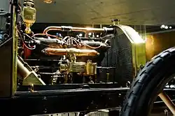 Мощность силового агрегата составляла 35 л.с.[7][11] (26 кВт) и передавалась на задние колёса большой роликовой цепью. Обороты двигателя колебались от 300 до 1000 в минуту[38]. Скорость автомобиля регулировалась водителем при помощи рычага на рулевом колесе.