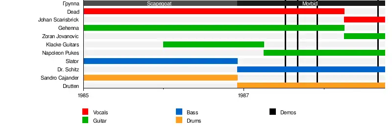 - Dead (Пер Ингве Олин) — основной вокал (1985—1988)