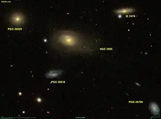 Скорее всего, галактика состоит в паре с PGC 26820. Вблизи этих галактик на небе также расположены IC 2474 и PGC 26816, но они с большой вероятностью являются фоновыми объектами[6]. NGC 2885 является источником рентгеновского излучения: один источник расположен в центре галактики и разрешить его не удаётся, а другой — к югу от неё, причём последний не виден в оптическом диапазоне. Оба источника проявляют переменность. Галактика является сейфертовской типа 1[5].