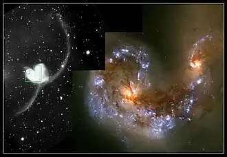 NGC 4039 — галактика в созвездии Ворон. Галактики NGC 4038 и NGC 4039 — пара взаимодействующих галактик, получившая название «Антенны».