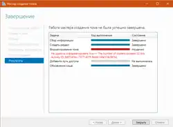 | Размер тома | теоретически — 264 — 1 кластер; разметка диска в стиле MBR позволяет создавать разделы, размеры которых не превышают 2 ТБ; чтобы обойти это ограничение, необходимо использование динамических дисков или разметки GPT (используя GPT, можно создать разделы диска размером до 9.4 ЗБ (9.4 × 1021 байт); выбор стиля разметки предоставляется при инициализации (первоначальной разметке) диска, начиная с версии Windows Server 2003 SP1, Windows XP x64 Edition, Windows Server 2003 x64 Edition и все версии NT выше 6.0[15]![]() При попытке создать том большего размера, том создаётся, но при форматировании в NTFS с размером кластера 64 кб выдаётся ошибка: The number of clusters exceeds 32 bits (Количество кластеров превышает 32 бита). минимальный размер тома: 8 МиБ |
