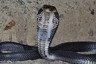Домен: Царство: Подцарство: Без ранга: Без ранга: Тип: Подтип: Инфратип: Надкласс: Клада: Клада: Класс: Подкласс: Клада: Инфракласс: Надотряд: Отряд: Клада: Подотряд: Инфраотряд: Caenophidia Надсемейство: Elapoidea Семейство: Род: Вид: Naja atra |