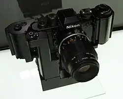 F3 AF — первая автофокусная зеркальная камера Nikon и первая в мире профессиональная камера с автофокусом, выпуск которой ограниченным тиражом запущен в 1983 году[34]. Фокусирующие двигатели были встроены в оправы двух объективов, специально разработанных для фотоаппарата. В первую автофокусную линейку входили AF-Nikkor 80 мм f/2,8 и AF-Nikkor 200 мм f/3,5, а также телеконвертер AF-TC-16S. С более поздними автофокусными камерами Nikon эта оптика несовместима, как и современные объективы AF Nikkor с моделью F3 AF[* 4].