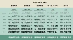 Noto CJK — это перемаркированные версии шрифтов Adobe Source, разработанные Adobe и Google, которые содержат китайско-японские иероглифы, хангыль, катакану и хирагану[6]. Латинские буквы и цифры взяты из шрифтов Source Pro[7]. ККЯ-шрифты переполнены и с 2021 не разрабатываются, только исправляют ошибки.