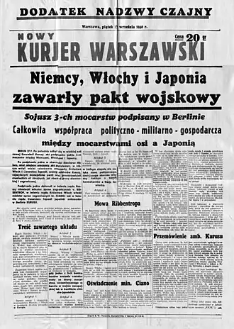 - ↑ "Nowy Kurier Warszawski", 30 listopada 1939 roku