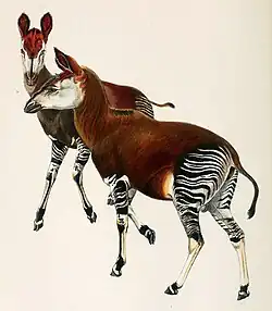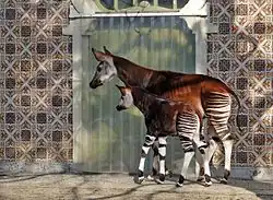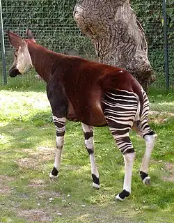 Ока́пи[2], или окапи Джонстона[2] (лат. Okapia johnstoni), — вид парнокопытных, единственный представитель рода окапи (лат. Okapia) из семейства жирафовых. По телосложению окапи на первый взгляд больше напоминают лошадиных, нежели жирафа, к тому же у них на конечностях имеются полоски, как у зебры. Тем не менее от лошадиных окапи довольно далеки, так как принадлежат к совсем другому отряду (зато в определённой степени похожи на древних, менее специализированных, общих предков жирафов). Видовое название дано в честь британского путешественника Гарри Джонстона (1858—1927)[3].