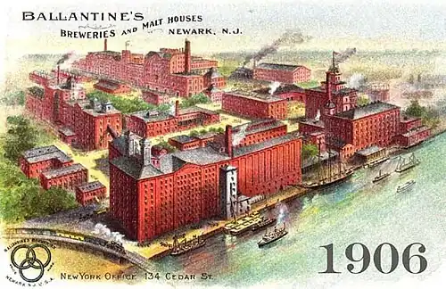Компания была основана в 1840 году в Ньюарке, штат Нью-Джерси, Питером Баллантайном (1791—1883), эмигрантом из Шотландии[1]. Первоначально компания была зарегистрирована как Patterson & Ballantine Brewing Company, а для размещения цехов арендовалась старая пивоварня, построенная в 1805 году. Примерно в 1850 году Баллантайн выкупил долю своего партнёра и приобрёл землю возле реки Пассаик, чтобы в дальнейшей производить эль в этом месте. Трое его сыновей присоединились к бизнесу, и в 1857 году компания была переименована в P. Ballantine and Sons. Это название будет использоваться в течение следующих 115 лет, до мая 1972 года, когда последовало закрытие пивоварни. К 1879 году Ballantine являлась шестой по величине пивоварней в США, почти вдвое больше, чем Anheuser-Busch. B тот же период была открыта вторая пивоварня, также в Ньюарке, для производства лагерного пива, чтобы пополнить продуктовую линейку компании. Питер Баллантайн умер в 1883 году, а его старший сын всего несколькими месяцами ранее. После этого руководство компанией перешло к среднему сыну Баллантайна, который управлял ей до своей смерти в 1895 году. Младший сын умер в 1905 году.