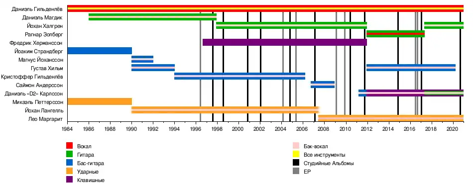 - Йохан Халгрен — гитара, бэк-вокал, мандолина (1998—2011, с 2017);
