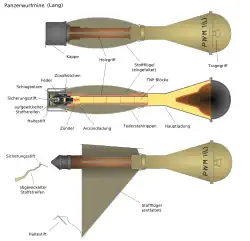 Обе конструкции имели боеголовки диаметром 11,4 см, с кумулятивным зарядом весом 500 г, которая могла пробивать примерно 150 мм КГБ при угле в 90 градусов.