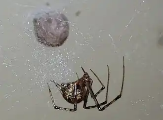 - ↑ Hodge, Maggie (1984). Anti-predator behavior of Achaearanea tepidariorum (Theridiidae) towards Stenolemus lanipes (Reduviidae): preliminary observations. Journal of Arachnology. 12 (3): 369–70. JSTOR 3705368.