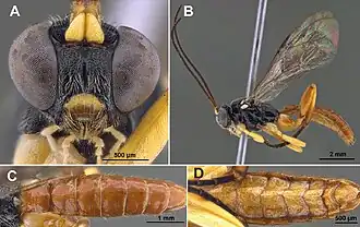 Перепончатокрылые насекомые-ихневмониды, которые от близких мексиканских видов отличаются следующими признаками: латеротергиты 2—5 узкие и малозаметные, шириной менее 0,2× от длины; мезосома черная с желтыми отметинами на субтегулярном выступе, щитике и заднещитике; тегулы желтые или с желтыми отметинами; мезоплеврон и нижняя часть метаплеврон полированные; щёчный промежуток длиной 0,5-0,7× больше базальной ширины мандибул. Вид был впервые описан в 1868 году американским энтомологом Э. Т. Крессоном, старшим (Ezra Townsend Cresson, senior; 1838—1926)[6][7].