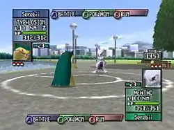 Боевая система в Pokémon Stadium полностью повторяет ту, что в портативных выпусках сериала. В связи с выходом Gold, Silver и Crystal боевая система, взятая из Red, Blue и Yellow, была изменена, чтобы быть ближе к более новым играм[4]. Игрок использует своих покемонов, чтобы сражаться с покемонами других тренеров. Бои проходят в пошаговом режиме. Во время боя игрок может приказать своему покемону использовать ту или иную способность в бою, сменить сражающегося покемона на другого или сдаться и отказаться от участия в турнире. Потеряв всех своих покемонов, игрок проигрывает. У каждого покемона есть очки жизни, если они иссякают, то покемон не может больше сражаться. Кроме того, покемоны принадлежат к разным типам, к категориям по стихийной принадлежности. Тип определяет, к атакам какого типа покемон будет устойчив, или, наоборот, уязвим. У некоторых покемонов могут быть одновременно два типа, при этом сохраняется ряд их особенностей. Принципиальное отличие от боевой системы в портативных выпусках сериала состоит в том, что во время битв нельзя использовать предметы и после победы покемоны не получают опыт. Тем не менее, можно экипировать покемона предметом, который тот может использовать в критичный момент боя.