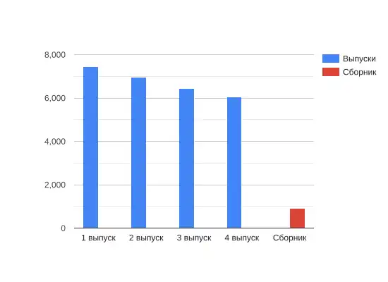 Ниже представлен график продаж выпусков и сборника за их первый месяц выхода на территории Северной Америки.