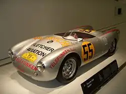 Porsche 550, также известный как 1500 RS[1] — спортивный автомобиль компании Porsche, производившийся с 1953 по 1956 годы. Представляет собой машину среднемоторной компоновки с 4-цилиндровым двигателем воздушного охлаждения. Непосредственным предшественником автомобиля в классе спортивных автомобилей является модель Glöckler-Porsche[2]; за образец для создания Porsche 550 был взят автомобиль Porsche 356/1, разработанный конструктором Ферри Порше, сыном основателя компании Фердинанда Порше. Подобный дизайн использовался для создания следующего гоночного автомобиля Porsche 718. В 1953—1957 годах было выпущено 118 экземпляров Porsche 550, 90 из них — в 1953—1956 годах. Этот автомобиль достаточно быстро стал доминирующим в классе спортивных автомобилей с двигателями объёмом 1,1 и 1,5 л — в 1953 году он выиграл Айфельскую гонку на автодроме Нюрбургринг, которая стала также и первой в истории для Porsche 550.