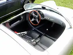 В середине передней крышки кузова находилось круглое отверстие для быстрого отсоединения топливного бака (вместимость бака — 68 л). На задней части крышки моторного отделения находилась вентиляционная решётка. Двери были выполнены из алюминия, а на дверных ручках снаружи находились замки, что позволяло заблокировать автомобиль во время обычного дорожного движения. Цельное лобовое стекло выполнялось многослойным; для участия в гонках его можно было заменить на вариант, выполненный из оргстекла. К двум ремням в верхней части рамы можно было прикрепить откидную или цельнометаллическую крышу. В автомобиле были два продольно регулируемых ковшеобразных сиденья. Панель приборов была приварена прочно к кузову и имела кожух: там находились приборы; выключатели для освещения приборов, включения фар и дворников; индикаторы давления масла, зарядки аккумулятора и дальнего света; замок зажигания, кнопка стартера и розетка. Также было установлено рулевое колесо диаметром 420 мм с тремя спицами[10]. Тип рулевого механизма — с винтом и гайкой[13].