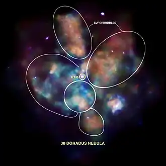 R136 — компактное звёздное скопление, которое находится в центре туманности «Тарантул», принадлежащей соседней галактике Большое Магелланово Облако. Содержит более 100 000 звёзд.