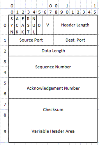 • Variable Header Area используется для передачи параметров сегментов SYN и EACK.