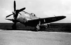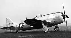 Рипаблик P-47 «Тандерболт» (англ. Republic P-47 Thunderbolt) — американский истребитель-бомбардировщик времён Второй мировой войны, производившийся с 1941 по 1945 годы, самый крупный одномоторный истребитель тех времён[2] . Основное вооружение составляет восемь крупнокалиберных (12,7 мм) пулемётов, будучи использован как истребитель-бомбардировщик обладал бомбовой нагрузкой в 1133 килограмма. При полной загрузке P-47 весил до восьми тонн, что делало его одним из самых тяжёлых истребителей войны. P-47 был разработан на основе мощного двигателя Pratt & Whitney R-2800 Double Wasp, который также использовался в истребителях ВМС США и корпуса морской пехоты США Грумман F6F «Хэллкэт» и Воут F4U «Корсар». «Тандерболт» был эффективен как эскортный истребитель ближнего и среднего радиуса действия, в высотных воздушных боях, а также в наземной атаке как на Европейском, так и на Тихоокеанском театрах военных действий. Был одним из основных истребителей ВВС США времен войны, особенно хорошо выполнял роль штурмовика. Благодаря радиальному двигателю и протектированным бензобакам отличался высокой живучестью.
