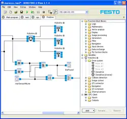 Для пользователей, чьи навыки программирования роботов невелики, существует программный продукт RobotinoView 2. Для более умелых пользователей предусмотрена поддержка роботом таких сред разработки, как C, C++, Java, .NET, MATLAB, Simulink, LabVIEW и Microsoft Robotics Developer Studio.