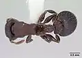Мелкие муравьи (длина 4—5 мм) желтовато-коричневого цвета. От близких видов отличается петиолем (первым члеником стебелька между грудью и брюшком), который в профиль длиннее своей высоты, дорсально относительно плоский, без округлого дорсального очертания. Характеризуется коренастым, твёрдым и компактным телом, толстыми проподеальными шипами, массивными петиолем и постпетиолем, а также брюшком, образованным в основном первым тергитом. Усики — 12-члениковые с 3-члениковой булавой. Нижнечелюстные щупики 5-члениковые, нижнегубные щупики состоят из 3 сегментов. Жвалы треугольные, с 6 зубцами, уменьшающимися в размере от апикального до базального. Голени средних и задних ног без шпор. Стебелёк между грудкой и брюшком состоит из двух члеников: петиолюса и постпетиолюса (последний четко отделен от брюшка), жало развито[1][2][4].