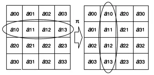 Байтовая перестановка осуществляет транспонирование байтового квадрата, то есть .
