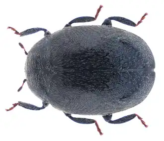 Жук длиной 2—2,8 мм. Всё тело, включая ноги, чёрное[3]. Узор: нет. Количество пятен: 0. Переднеспинка: чёрная. Цвет головы: чёрный. Цвет ног: чёрный с бледно-темно-коричневыми лапками. Другие особенности: волосатая.
