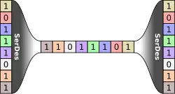 SerDes с чередованием битов мультиплексирует несколько медленных последовательных потоков данных в более быстрые последовательные потоки, и приёмник демультиплексирует быстрее битовые потоки обратно в медленные потоки.